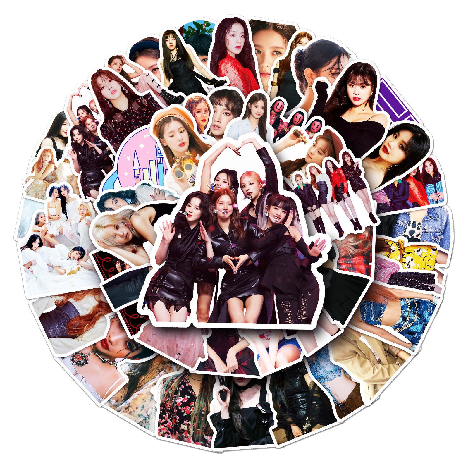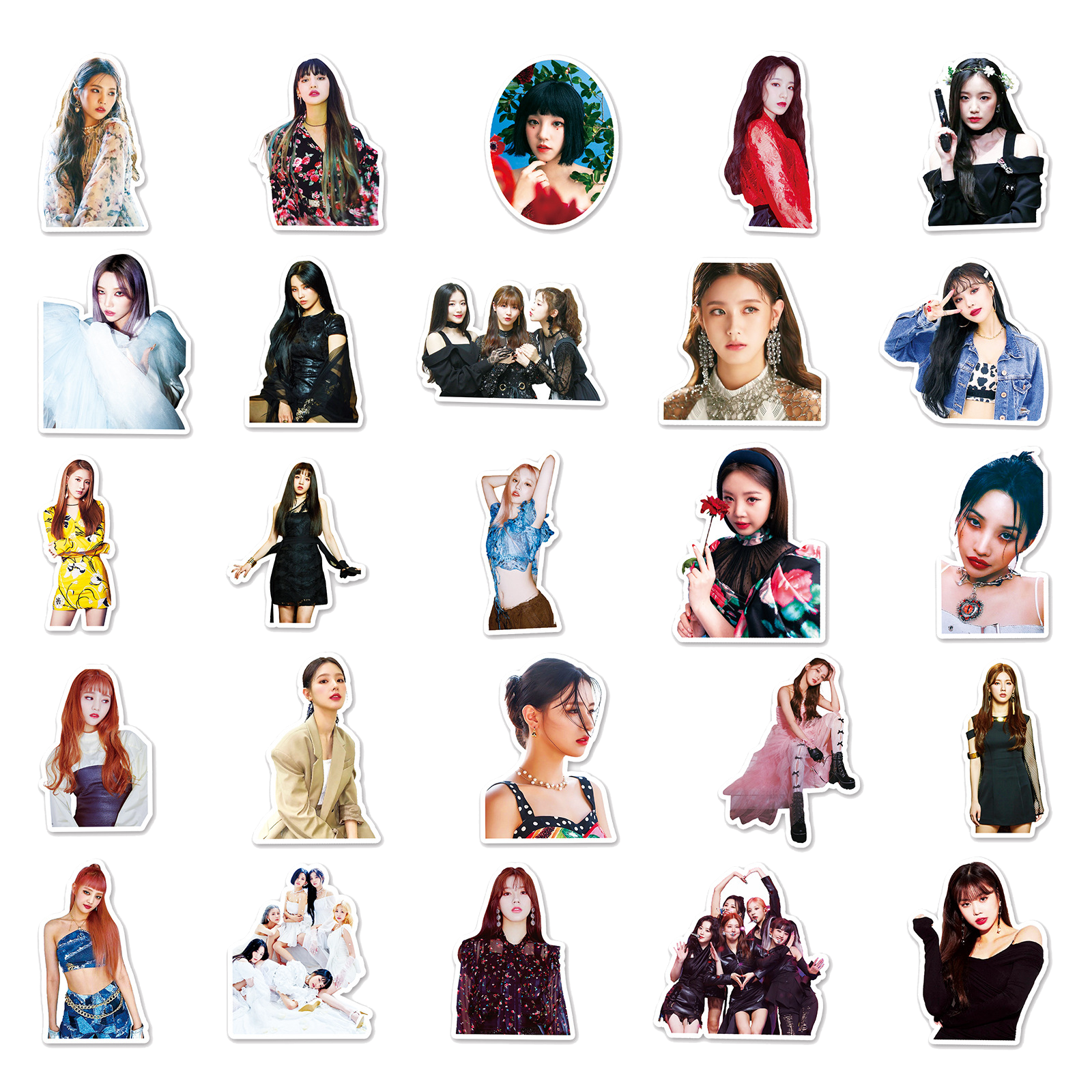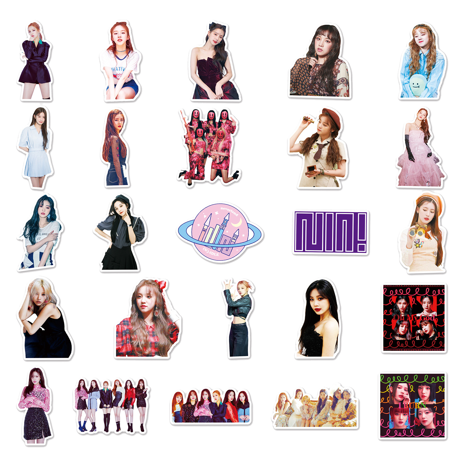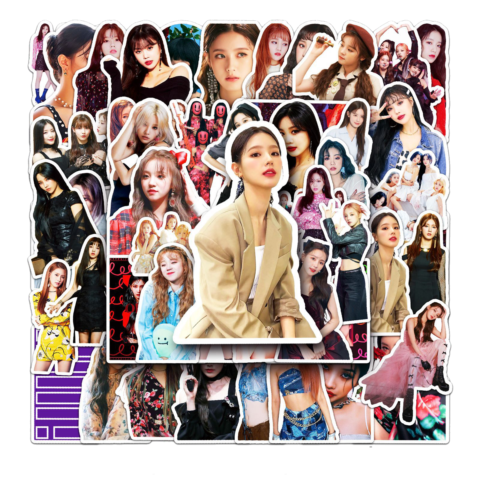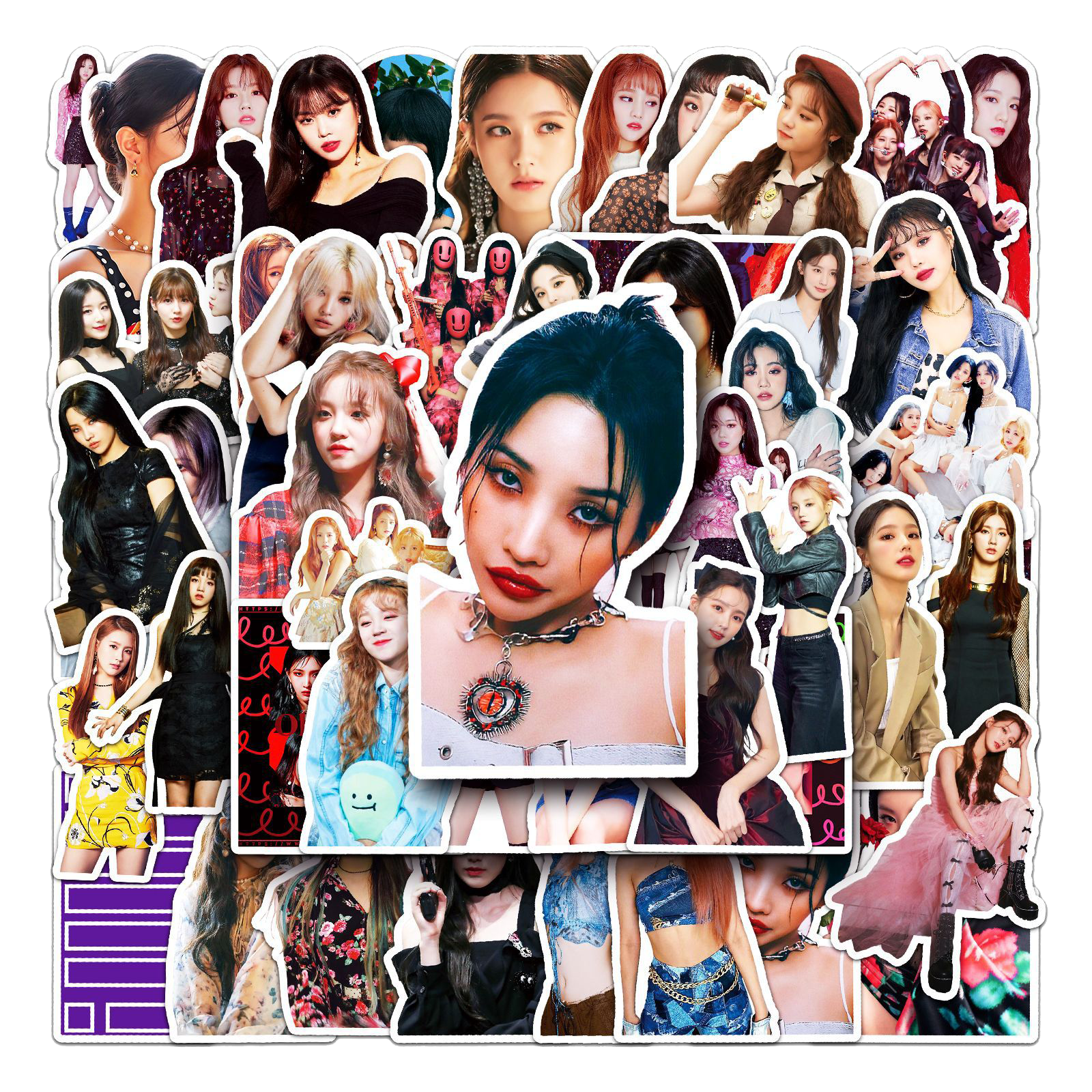 Jazz up your belongings with these (G)I-DLE stickers! With 50 unique designs, you'll always have the perfect sticker for any mood. Perfect for personalizing your laptop, phone case, water bottle, and more. Show off your love for (G)I-DLE in a fun and playful way. (Warning: may cause extreme fangirling/fanboying).😜