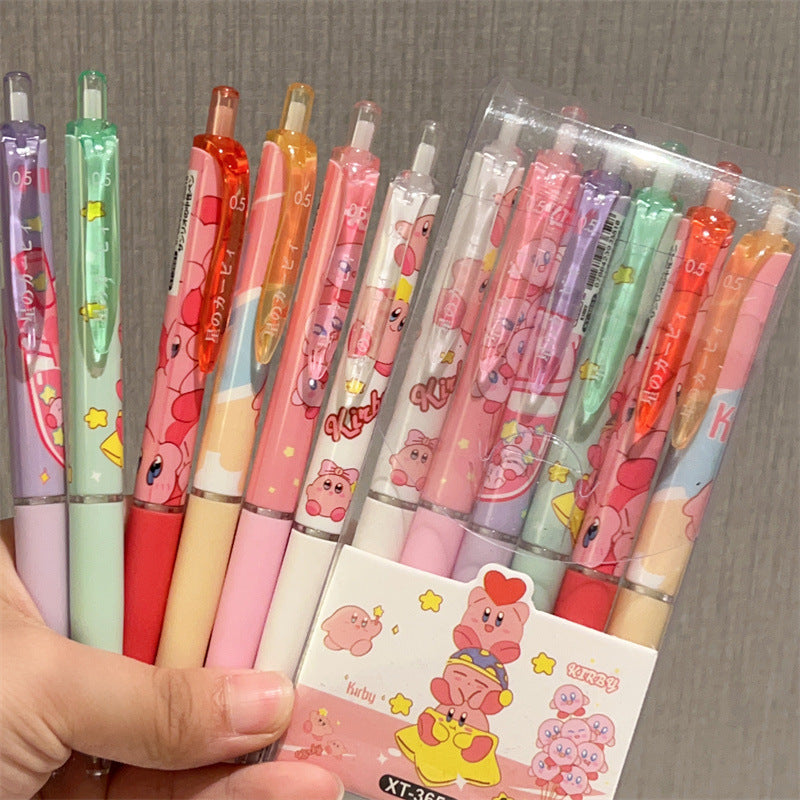 Get your hands on this Kirby Gel Pen Box Set - 0.5 mm - Set of 6 - Black Ink and unleash your creativity! With 6 pens in a set, you'll never have to worry about running out of ink. Each pen is designed with a fun and quirky Kirby character, adding a playful touch to your writing. Perfect for taking notes, doodling, or just making your work a little more fun!