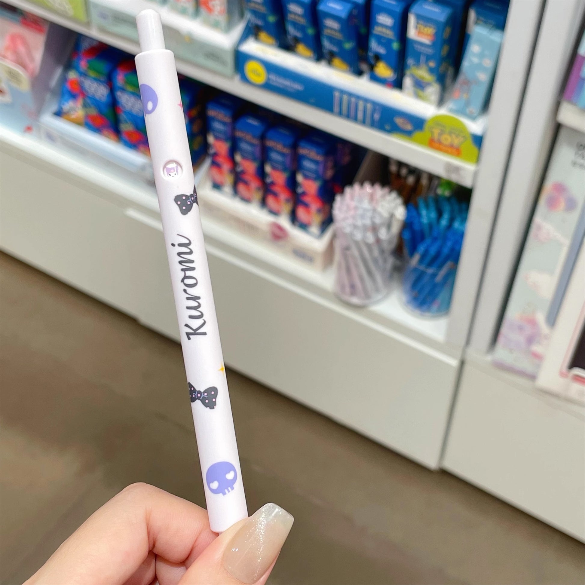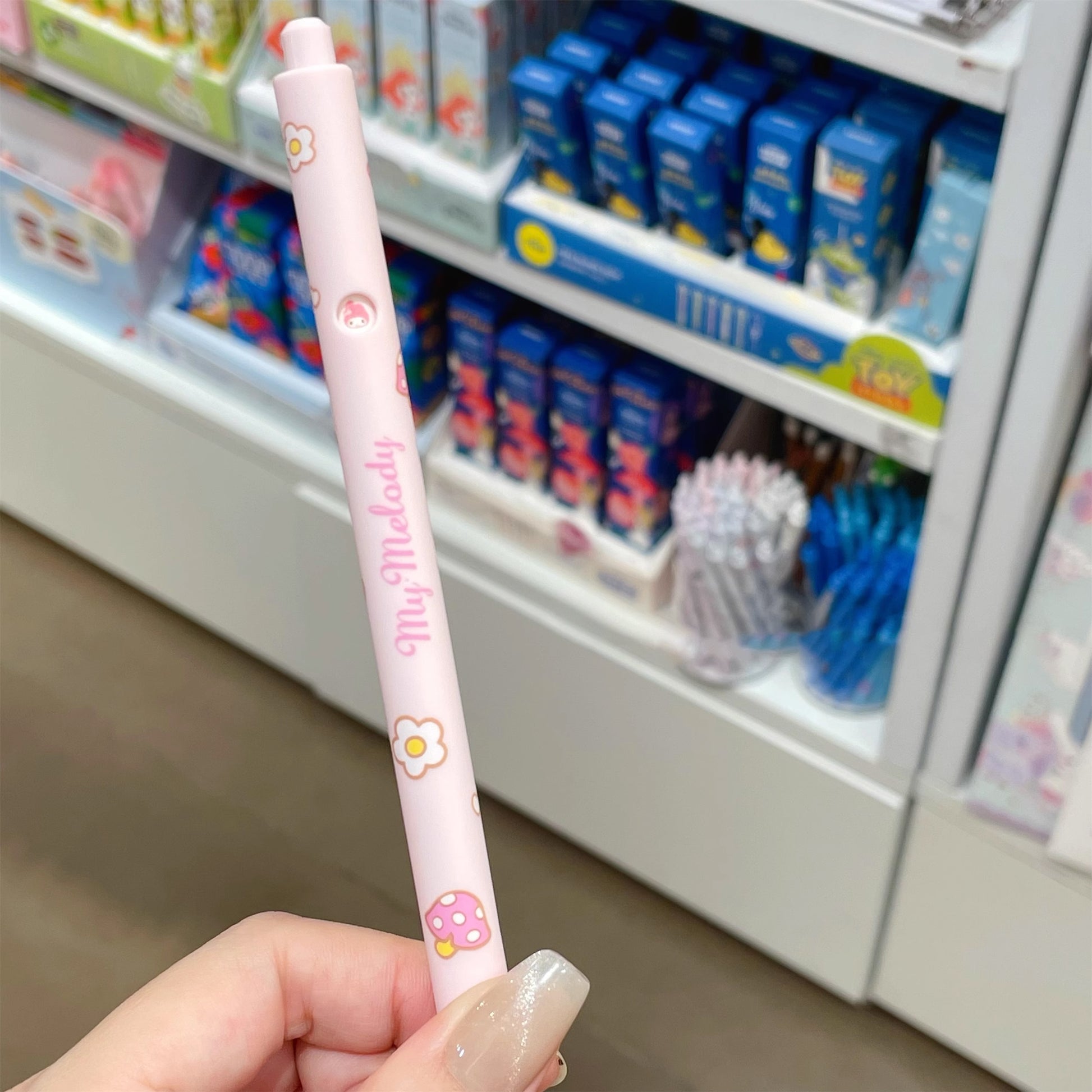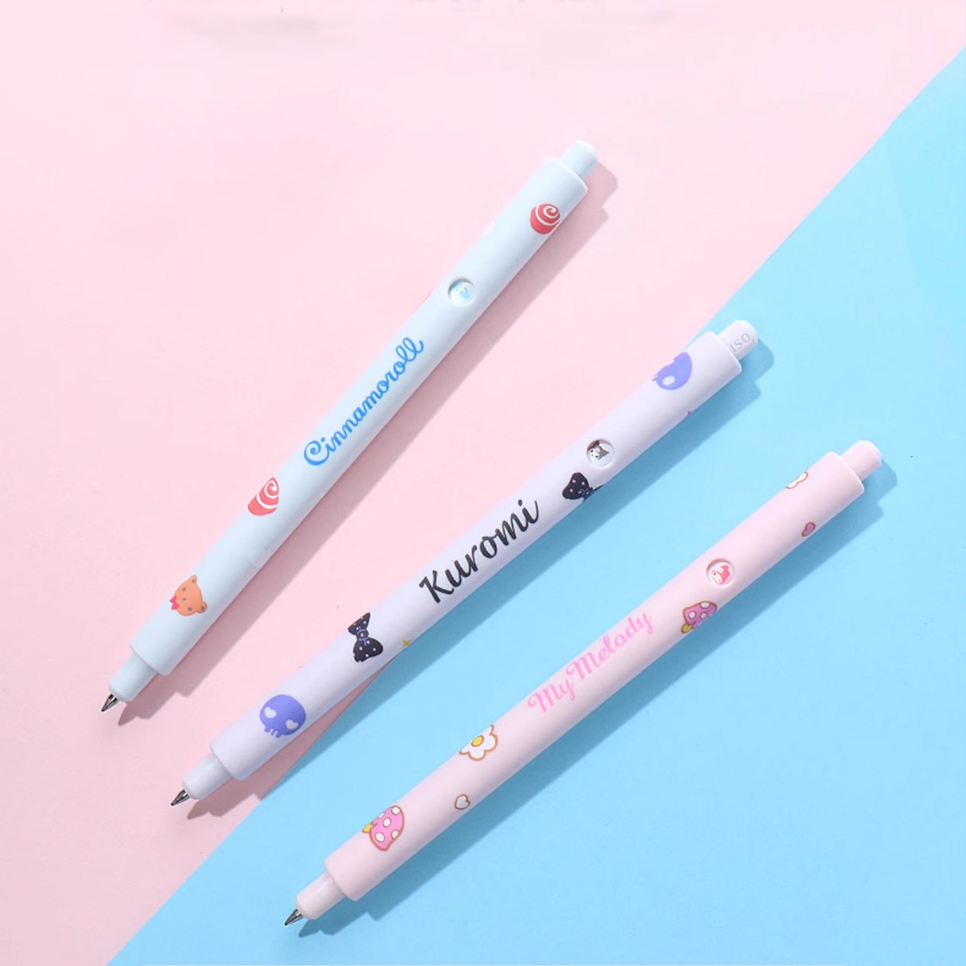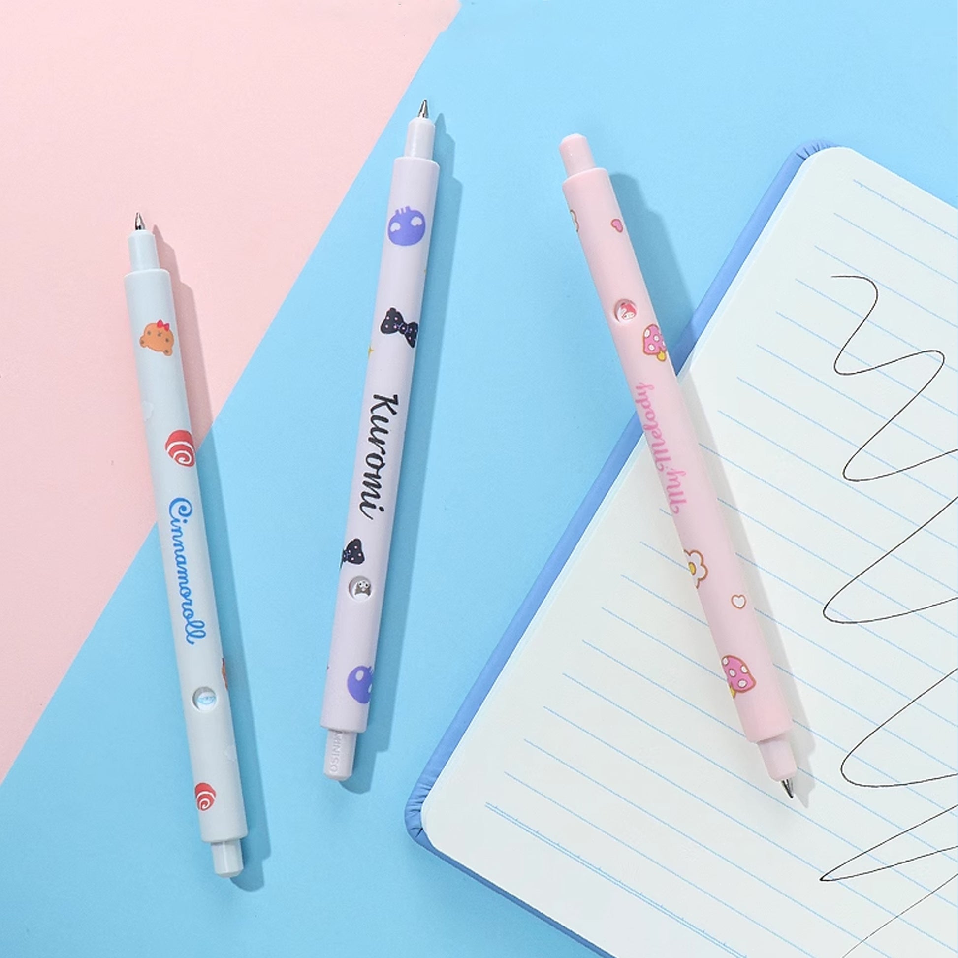 A smart-designed retractable gel pen which you can have so much while using it. Every time you push the top, the sanrio emoji will be different. The ink dries quickly and won't faint even if there's water on it. Express yourself with the fun Sanrio design on the barrel. Perfect for writing, doodling, and journaling!