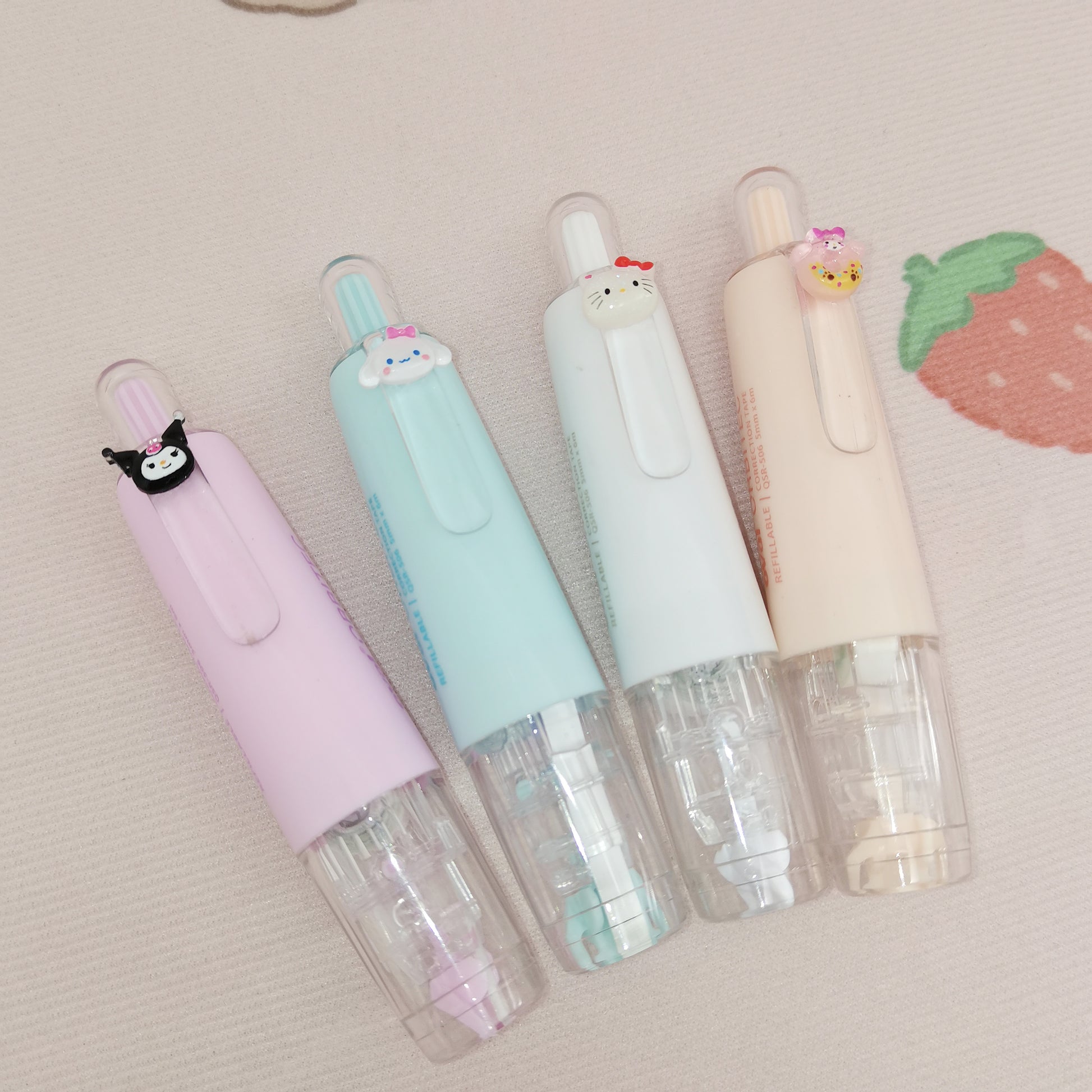 Each correction tape adorned with a Sanrio mascot is meticulously hand-applied, a testament to my love for Sanrio. What you receive will be randomly selected, but if there's a specific Sanrio character you desire, please mention it in the order notes.