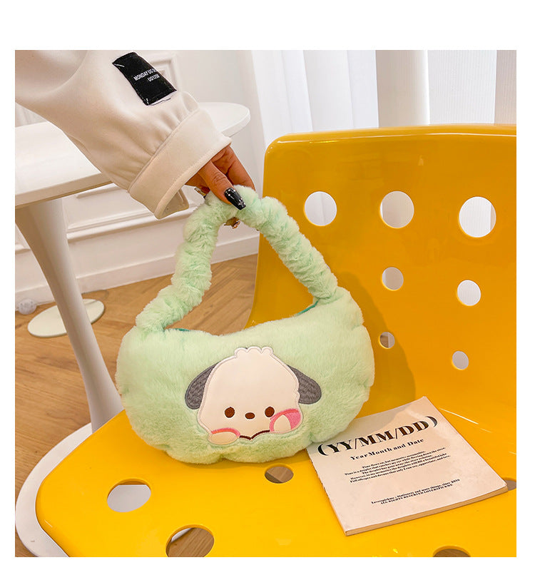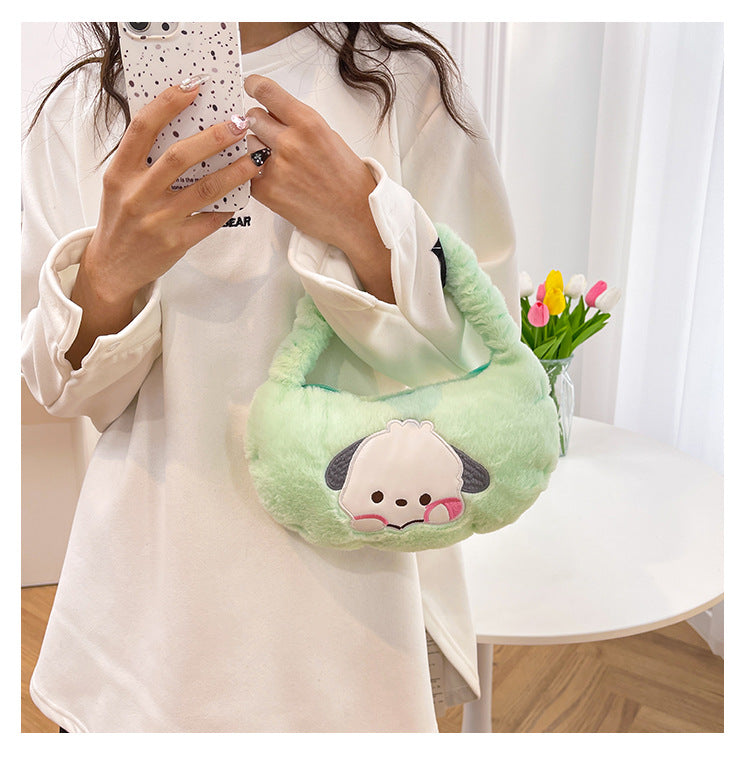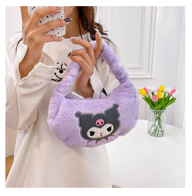 Introducing the purr-fect accessory for any Sanrio fan! This plush tote bag is made with ultra-soft material and features your favorite Sanrio characters. With enough room for all your essentials, you'll never want to put this adorable bag down. Meow you can carry your favorite friends wherever you go!