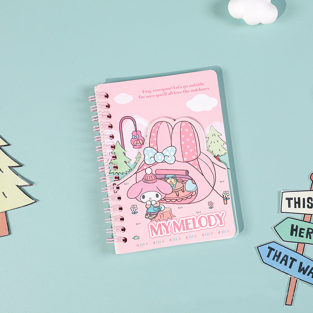 Take notes in style with this Sanrio Ring Notebook - A6 - Ruled. Sanrio Coils Horizontal Line Notebook, A6 size. Unique notecard-style cover design. Its twin-ring binding lets you fold the pages back completely and to tear out individual pages when you need to. The sanrio design adds a touch of whimsy. Get ready to be organized and cute!
