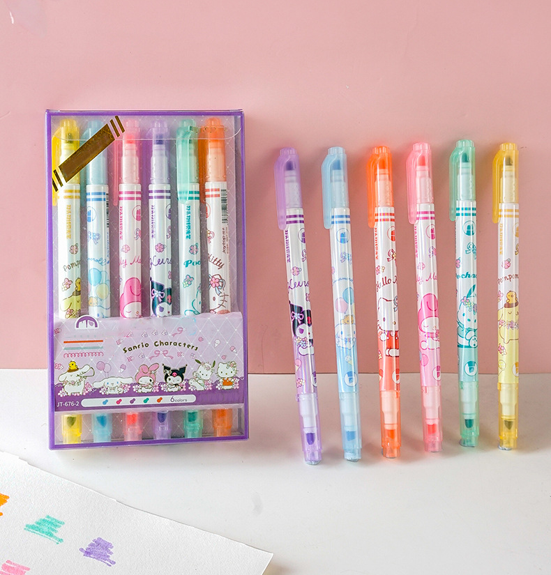 Sanrio Double-Sided Highlighter - 6 Colors Set