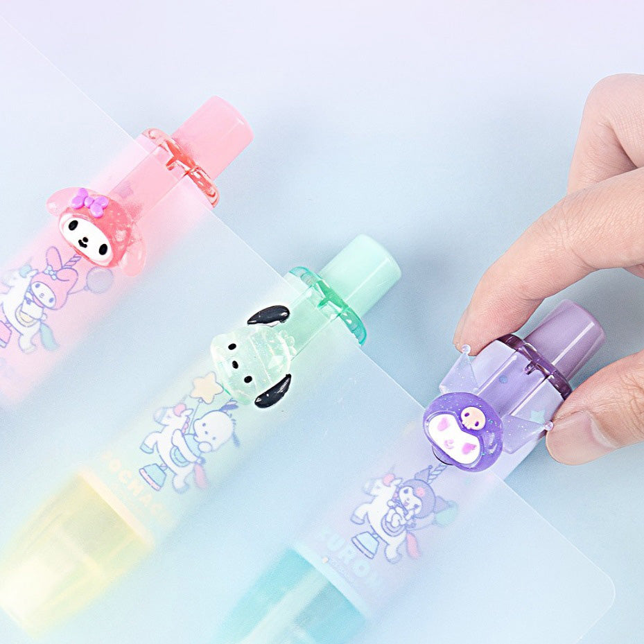 This glue tape features a light knock design, and it also includes a clip that can be attached to books. In addition to this, there are the adorable Sanrio characters mascot on the clip, making it very cute!