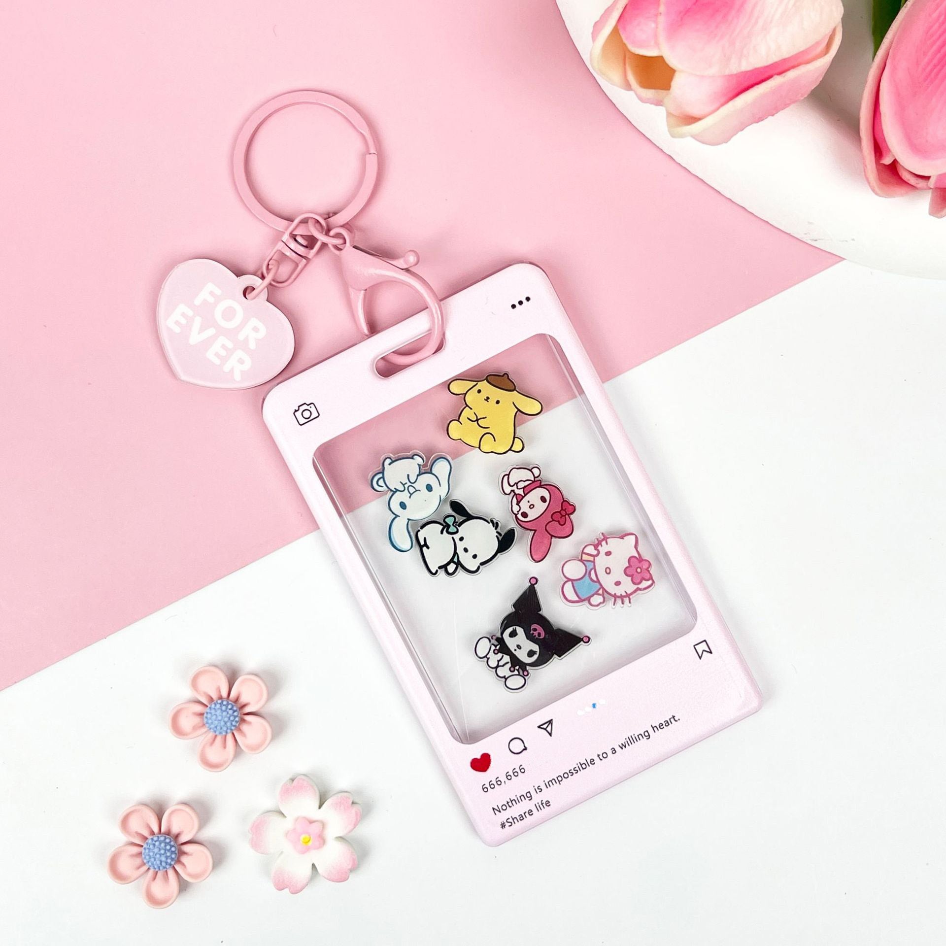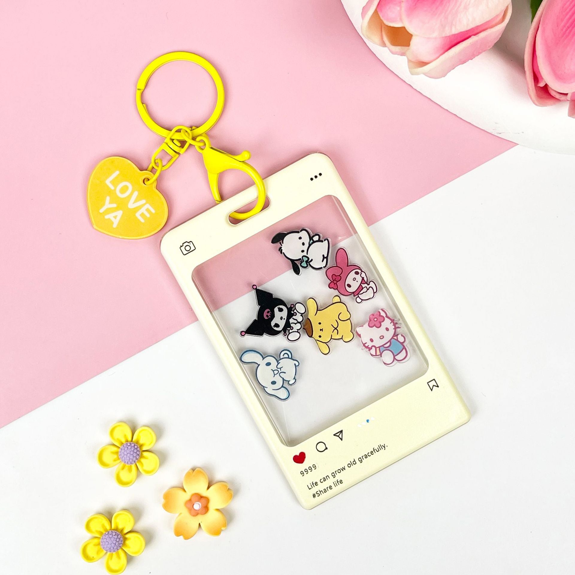 Sanrio Transparent Card Holder features a rounded corner design that provides protection without being cumbersome. With its sliding cover design, you can easily insert and remove cards by simply sliding the back card up and down. Each card holder comes with an acrylic card featuring a Sanrio character, adding a touch of joy as you shake it. The clear, transparent holder not only showcases your cards beautifully but also protects them from wear and damage. It's practical and adds a cute personal touch to your everyday life. Whether for personal use or as a gift for a friend, this Sanrio Transparent Card Holder is a perfect choice.